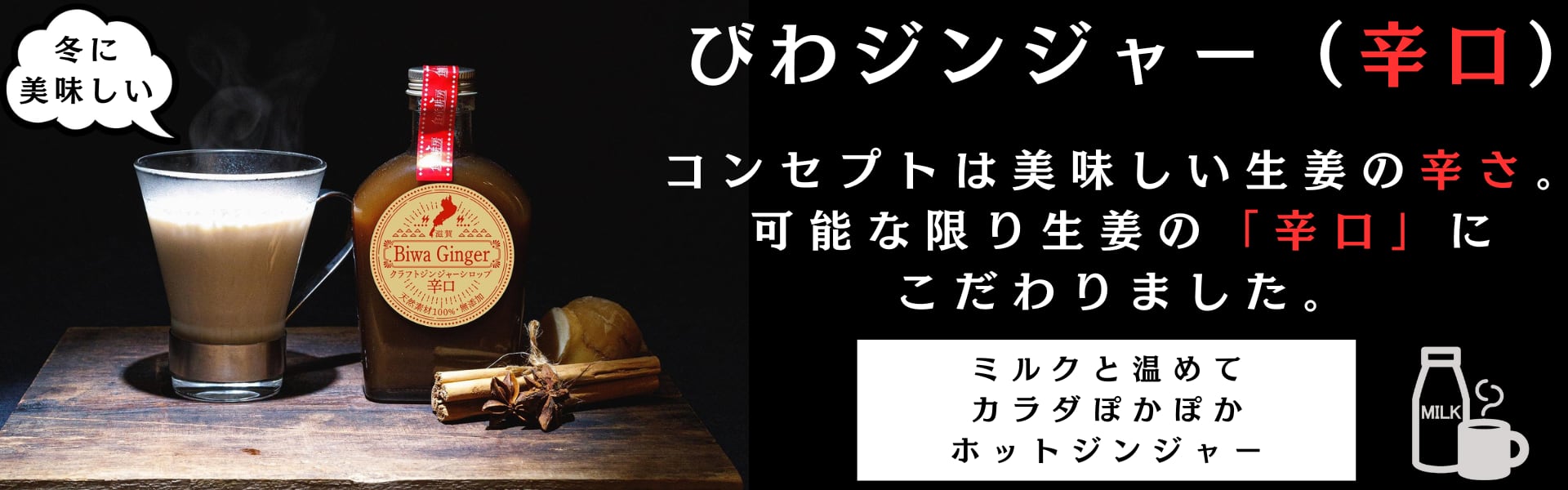 『びわジンジャー辛口』 「記憶に残る生姜の辛さ」「大人向け」の2つをコンセプトに作られた天然素材100%の辛口クラフトジンジャーシロップです。 辛さの中にふんわりと香るきび砂糖の甘さも「大人向け」の特徴です。 炭酸水で割ると辛口ジンジャーエール。 温かいミルクで割るとチャイ風に。 生姜の持つ健康効果を活用した、 スパイシーで香り高いシロップをお楽しみください。 《こだわり》 ■1.【辛口に仕上げ、出来る限り生姜を使用】 ”普通では物足りない方向け”をコンセプトに味を仕上げました。 ■2.【自社農場で生姜を栽培】 "カラダにやさしい"をモットーに 自社農場で農薬・化学肥料不使用で栽培した生姜を使っています。 ■3.伝説の霊果「むべ」を入れました。 天智天皇(中大兄皇子_なかのおおえのおうじ)が命名に関わった皇室献上品の果物を使用! 【内容量】 びわジンジャー辛口 ×2個 びわコーラの美味しい飲み方(例)×1枚