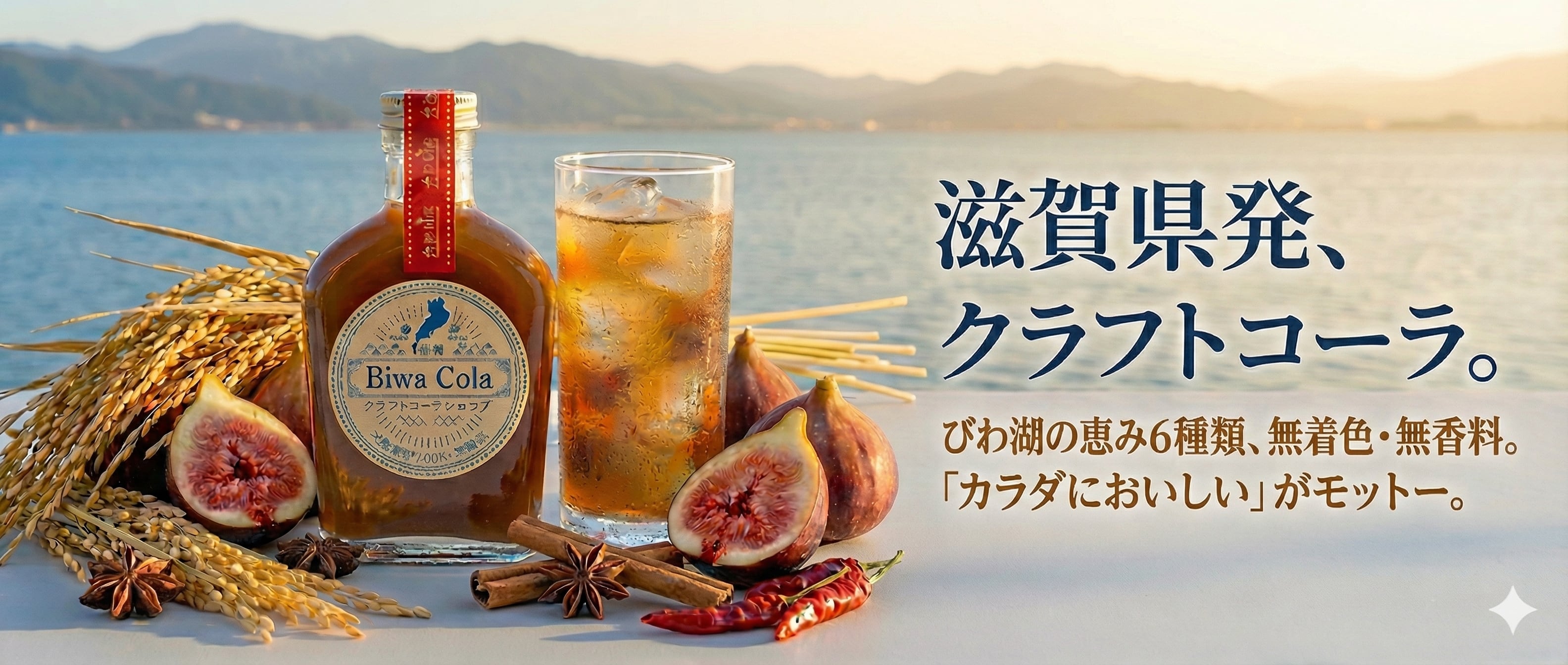びわコーラ(炭酸入り)3本セット【滋賀クラフトコーラ】 ―――― ●フタを開けたら、はじける炭酸● これまでシロップタイプでご好評いただいていた「びわコーラ」が、ついに 炭酸入りの瓶タイプ になりました。 冷やしてそのまま、開けた瞬間の爽快感をお楽しみいただけます。外出先でも、仕事の合間にも、手軽にクラフトコーラ。 ―――― ●味の特徴● 無着色・無香料、素材本来のやさしい風味 柑橘の爽やかさとスパイスの香りが絶妙に調和 甘さはすっきり、後味は大人っぽいキレ 炭酸の刺激が加わることで、従来の「びわコーラ」の深みある味わいに、軽やかな飲みやすさがプラスされています。 ―――― ●滋賀県産6種のこだわり素材● ・蒲生あかねいちじく ・近江米(米粉) ・むべ(近江八幡市北津田町産、天智天皇ゆかりの果実) ・柑橘類(時期により産地変更あり) ・安土養蜂園のはちみつ ・弥平とうがらし(滋賀県固有種) 地域の農家さんを訪ね、納得した素材だけを使用。滋賀の自然と人の想いが詰まった一本です。 ―――― ●商品詳細● 内容量:250ml × 3本 価格:1,800円(税込) 保存方法:直射日光を避け、常温保存。開栓後は早めにお召し上がりください。 ―――― こんなシーンにおすすめ ご自宅でのちょっと贅沢なリフレッシュドリンクに 手土産やギフトにもぴったり 滋賀の魅力を伝えるお土産として ―――― 「びわコーラ」ならではの、素材の深みと炭酸の爽快感。ぜひ一度お試しください。