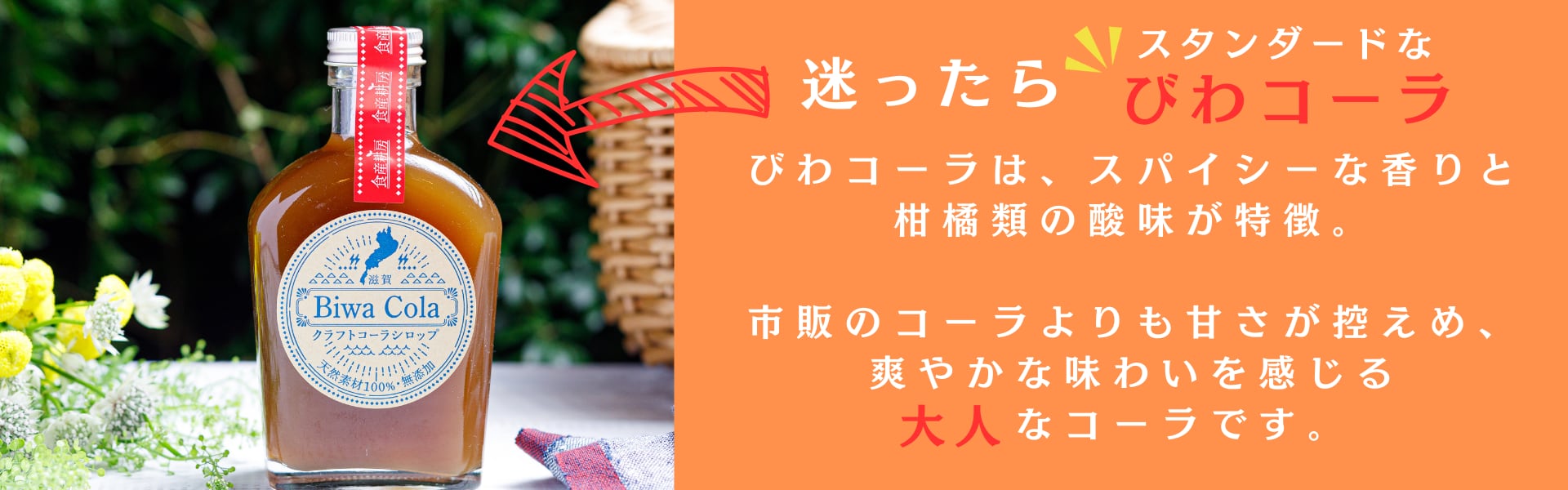 《びわコーラとは》 滋賀県産の素材や滋賀由来の食材を使った クラフトコーラシロップです。 天然素材のみを使って一本一本丁寧に手作りしています。 《味は?》 スパイシーな香りと柑橘類の酸味が特徴で、 市販のコーラよりも甘さが控えめで爽やかな味わい。 スパイスの独特の香り、柑橘類のさわやかさが 口の中で広がる大人なコーラです。 《びわコーラ》の2つのこだわり ■1.滋賀県に由来する食材、滋賀県産の素材を出来る限り盛り込み、滋賀県の素材を楽しめる味となっています。 ◉蒲生あかねいちじく(滋賀県のブランドいちじく) ◉近江米(近江米の米粉でトロミをつけました) ◉近江八幡市 北津田町産の むべ(天智天皇由来の果物です) ◉近江八幡市産の柑橘(滋賀の農家さん直送) ◉安土養蜂園のはちみつ(安土城下の老舗はちみつ屋さん) ◉弥平とうがらし(滋賀県固有種のとうがらし) ※柑橘類は、時期によって滋賀県産以外も使用します。 ■2.手作りで作っています。 工場での大量生産ではなく「手作りの商品を届けたい」という想いから、 自社で一本一本丁寧に手作りで製造しています。 【商品名】 びわコーラ【1個入】 【内容量】 びわコーラ ×1個 びわコーラの美味しい飲み方(例)×1枚 びわコーラカード×1枚 【商品名】 びわコーラ【3個セット】 【内容量】 びわコーラ ×3個 びわコーラの美味しい飲み方×1枚